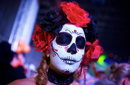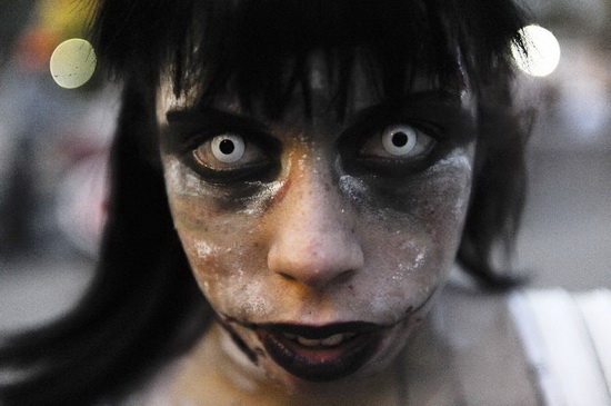 A woman poses during a Halloween Eve Party in Belgrade on October 30, 2011. Halloween is based on the Celtic festival of Samhain and the ancient Celts believed the border between this world and the otherworld became thin on that night, allowing spirits to pass through.