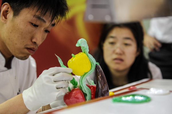 A chef demonstrates sugar craft during China Beijing International Fair for Trade in Services in Beijing