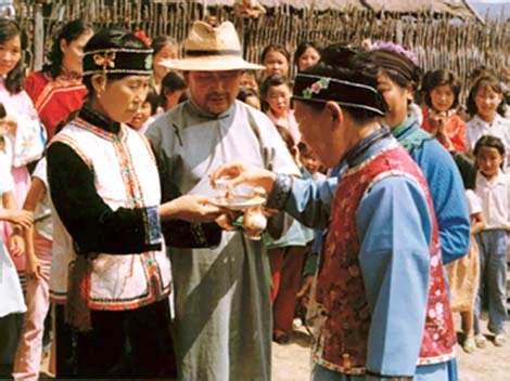 Wine has found its multi-purposes in China. Indispensable as it is in folk customs, it's absolutely a must in weddings, and almost every step in a wedding is related with wine. Xijiu (happy wine, namely, wedding feast) in Chinese even becomes a substitute of wedding, since attending a wedding feast is often referred to as attending a wedding.