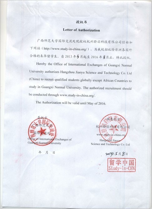 The College of International Culture and Education (CICE) of Guangxi Normal University was established in February 2000, on the basis of the Center for Training Chinese Language as a Second Language and the Center for International Exchanges of Culture and Education which was founded in 1979. It now consists of the Department of Chinese Language and Culture and the Department of Foreign Languages and Cultures, enrolling students to undertake 4-year undergraduate programs or to study in the long-term and short-term programs. It is responsible mainly for the enrollment and teaching of international students and Chinese students studying in the joint-venture education programs. The college now has a full-time Chinese teaching staff as many as 18 people, of whom there are 1 professor, 5 associate professors, 5 doctors and would-be doctors. The college is equipped with a highly-competent teaching staff, well-qualified administrators, and up-to-date facilities. It possesses a multi-functional International Exchange Building with a floor space of 15,000 square meters, which is facilitated with a convention hall, multi-media classroom, computer network room, audio-visual room, sound laboratory, reading room, reference library, recreational center, cafeteria, etc.. Its International Service Center prepares rooms of various standards to accommodate around 1,000 people with its good service.