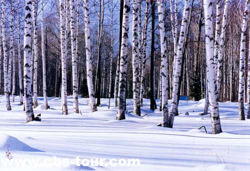 "걸음마다 다른 경관"이라는 말이 정말 맞았다. 서리꽃의 경관이 아직 가셔지지 않았는데 자작나무숲이 빛을 번쩍이며 다가왔다. 전하는데 의하면 자작나무숲은 해발 1,800m - 2,000m까지사이에서만 자라나 장백산의 허리에 둘러진 치마를 방불케 한다고 한다. 곳은 산세가 가파롭고 평균 기온이 10-14도밖에 안되고 항상 바람이 불고 토질두께도 엷어 일반 나무는 이런 곳에서 근본 자라지 못한다. 바람, 눈속에서 푸름을 자랑하는 소나무도 곳에는 발을 붙이지 못하는데 내한성이 강한 자작나무만이 자신의 강한 저항력으로 거의 수직으로 되는 산에 뿌리를 내리고 바람을 맞받아 생명을 자랑하고 있었다.