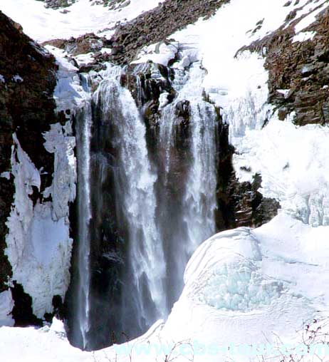 시냇물을 지나니 개활지가 나타났다. 이제 멀지 않으면 장백산 폭포를 볼수 있을것이라고 마음을 위안하는데 눈보라가 앞을 가려 이제 얼마를 가야 할지 도무지 보이지 않았다. 지성이면 감천이라고 얼마 지나지 않아 장백산 폭포가 우리의 앞에 모습을 드러냈다. 위에는 창망한 하늘이 걸려 있고 주변에는 온통 눈이 덮여 있는데 은색의 갑옷을 입은 용사가 절벽에서 혹한과 싸움이라도 하듯 장백산 폭포는 양쪽에 옥색의 얼음기둥을 만들며 변함없이 절벽을 뛰어내리고 있었다.