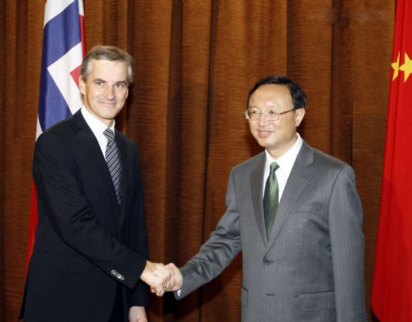 Chinese foreign minister Yang Jiechi held talks with Stoere earlier Monday.