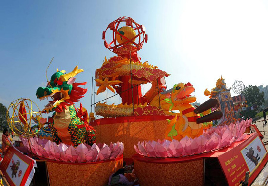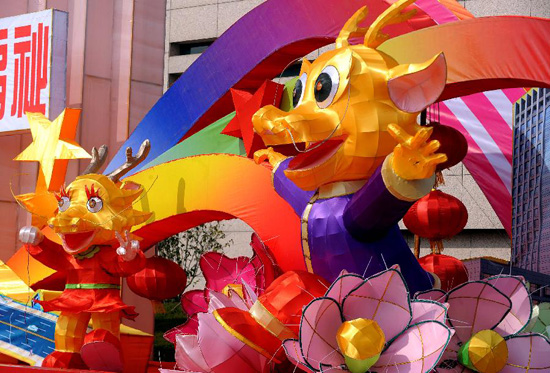 Lanterns in shapes of dragons are seen in Hangzhou, capital of east China's Zhejiang Province, Jan. 31, 2012, to celebrate the traditional Lantern Festival, which falls on Feb. 6 this year