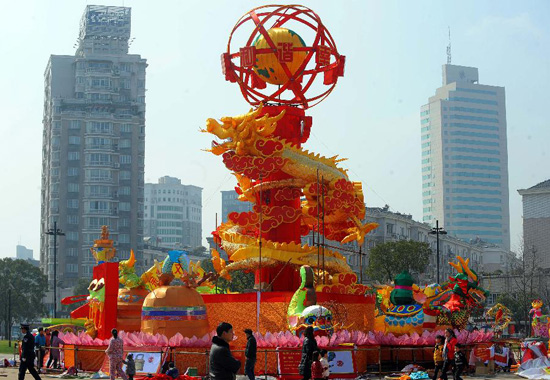 Lanterns in shapes of dragons are seen in Hangzhou, capital of east China's Zhejiang Province, Jan. 31, 2012, to celebrate the traditional Lantern Festival, which falls on Feb. 6 this year.