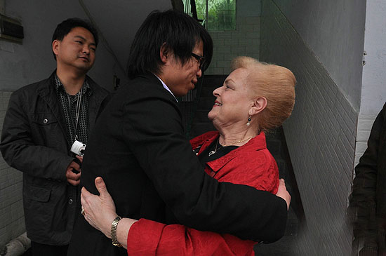 Jenny Ma with an orphan she adopted.