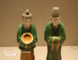 Also on exhibit were 31 pottery figurines which showed up abroad and were purchased and donated to China’s government by overseas Chinese. They were from Shaanxi Hanyang Tomb, where Liu Qi (188 -141 BC), the fourth emperor of the Western Han Dynasty, and his queen were buried.